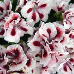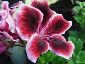 Пеларгония крупноцветковая – это куст высотой около 60 см, который отличается травянистыми прямостоячими стеблями, насыщенно-зелеными листьями и большими соцветиями диаметром до 25 см. Цветы пеларгонии королевской в диаметре могут достигать 7 см. Состоят они из лепестков, которые в зависимости от сорта имеют разнообразную окраску и форму. Простые или махровые бутоны обладают ровными или волнистыми краями. Цвет у них может быть однотонный или биколор, когда внутри цветка имеются контрастные включения.