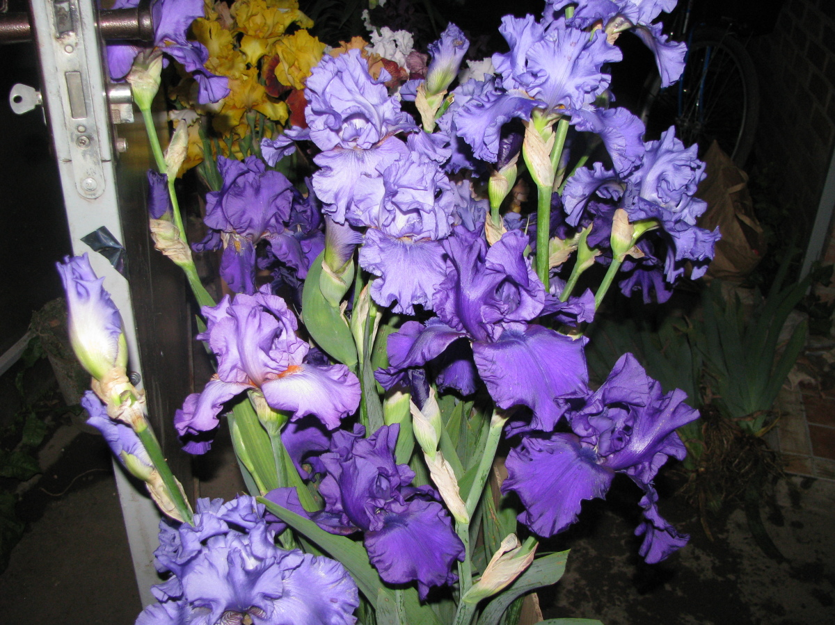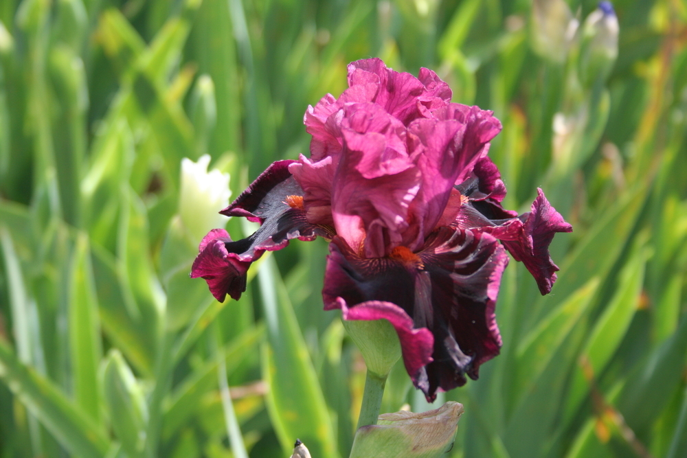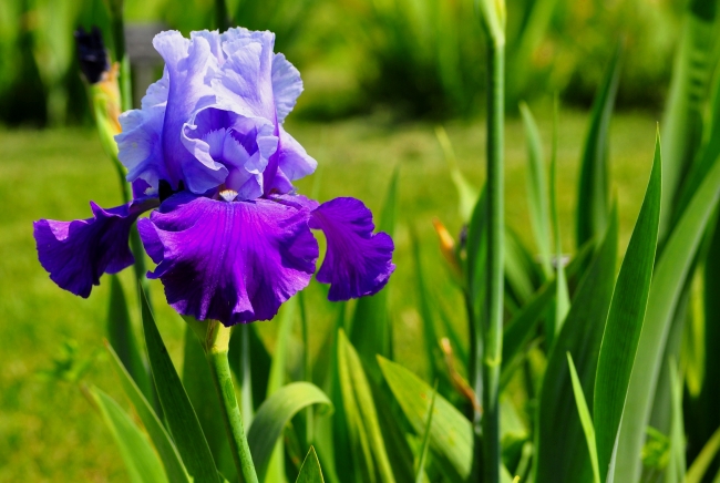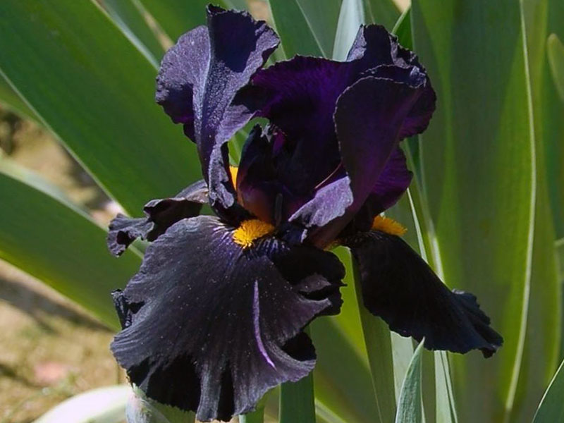 Один из более известных ирис Германский. Его выращивают повсюду. Этот вид очень любит свет и тепло. В период бутонизации грунт должен быть достаточно увлажнённым. Самые используемые сорта ириса германского такие: Baltic Sea – цветок с голубыми лепестками и синей бородкой, Bewilderbest — цветок с гофрированными кремовыми, бордовыми или красными лепестками, отделанными белыми или жёлтыми полосками и штрихами. Acoma — популярный в Америке, голубого или кремового окраса с каймой лавандового цвета.