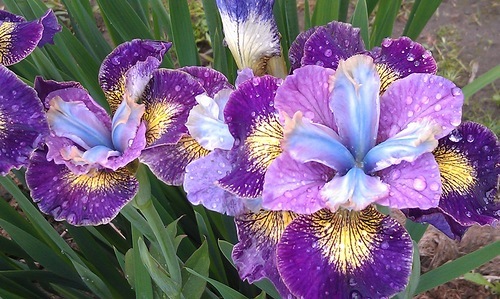 Бородатые ирисы получили свое название из-за того, что щетинистые выросты на нижних лепестках образовывают «бородку», еще их называют «северной орхидеей». Цветки у этих ирисов раскрываются снизу вверх. Начинают цвести в мае, но самое обильное цветение приходится на июнь.