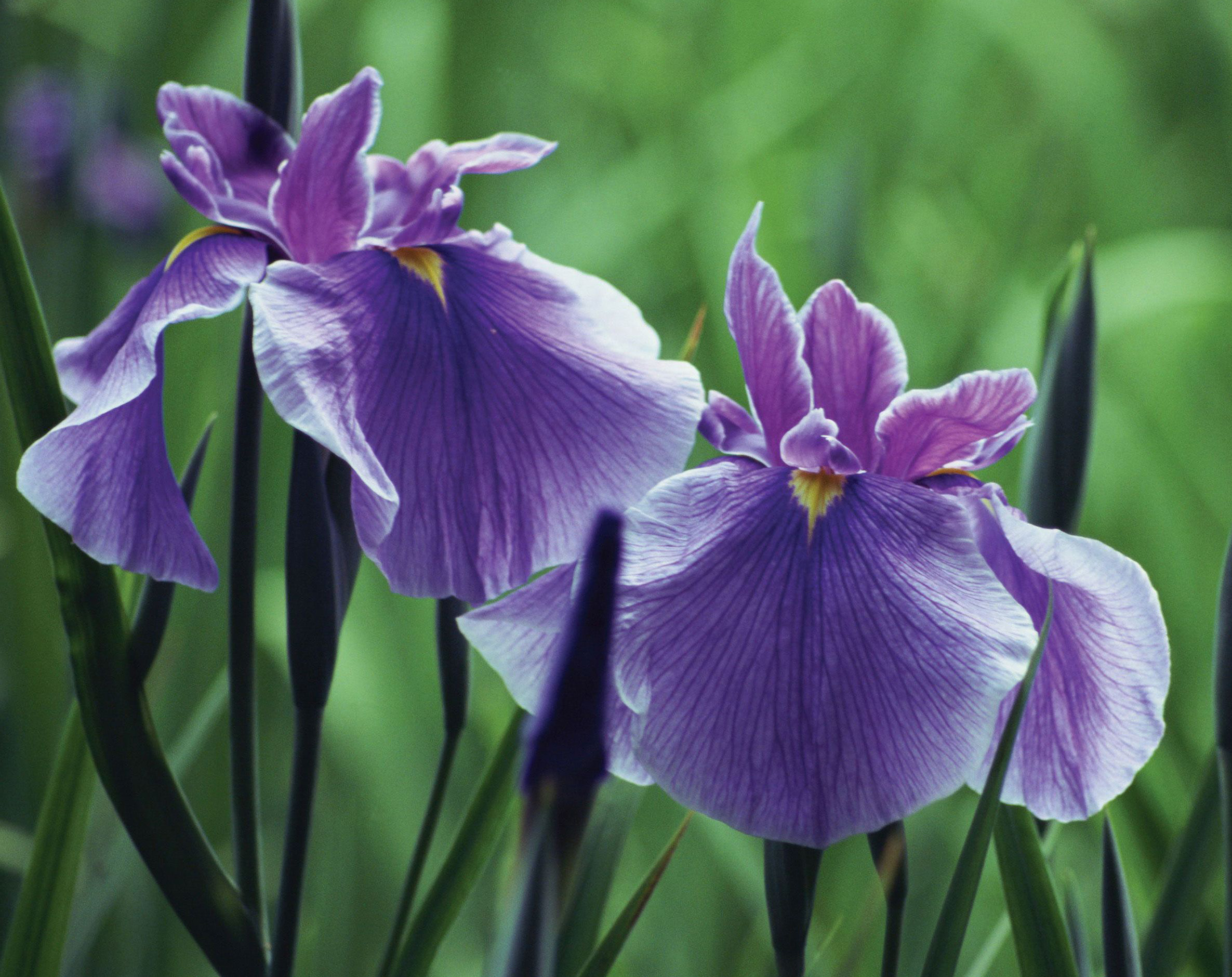 Ирис мечевидный (японский) относится к не бородатым. Его цветы похожи на орхидею, крупные – до 25 см, не имеют запаха. Очень боятся морозов, поэтому цветоводам лучше выбирать вот эти сорта: Nessa-No-Mai – фиолетовый с белым, цветки – до 23 см в диаметре; Сольвейг – нежный светло-сиреневый, Василий Алферов – чернильного цвета, не махровый.