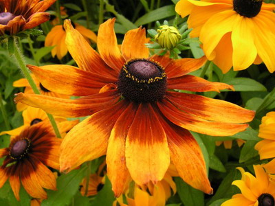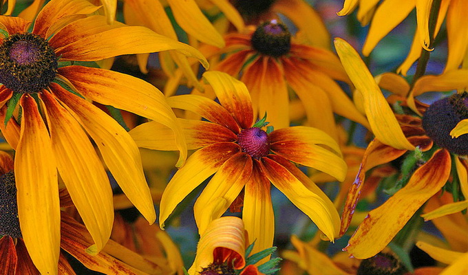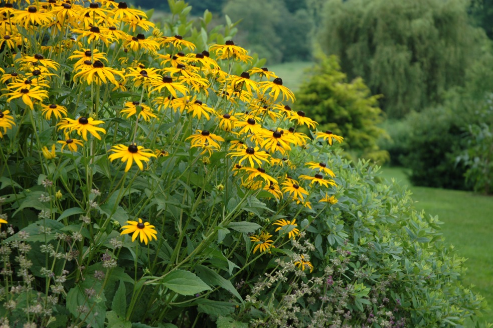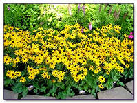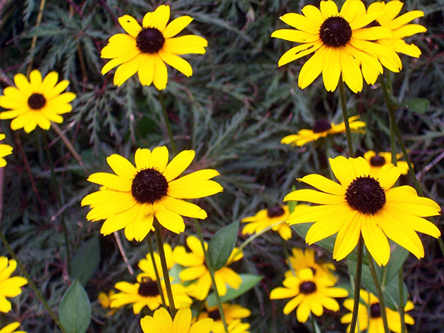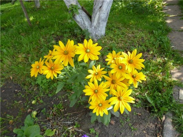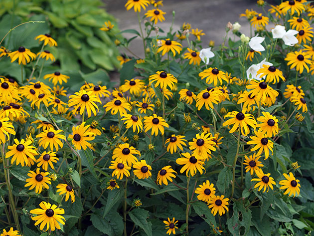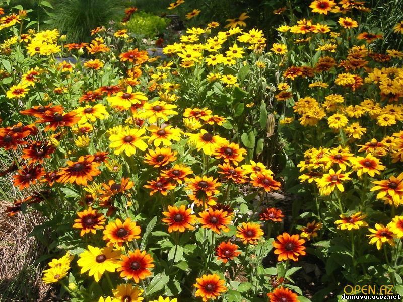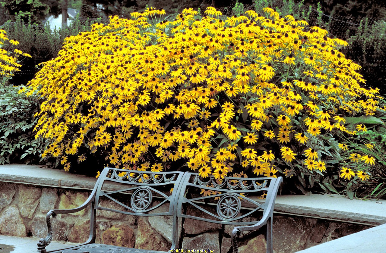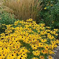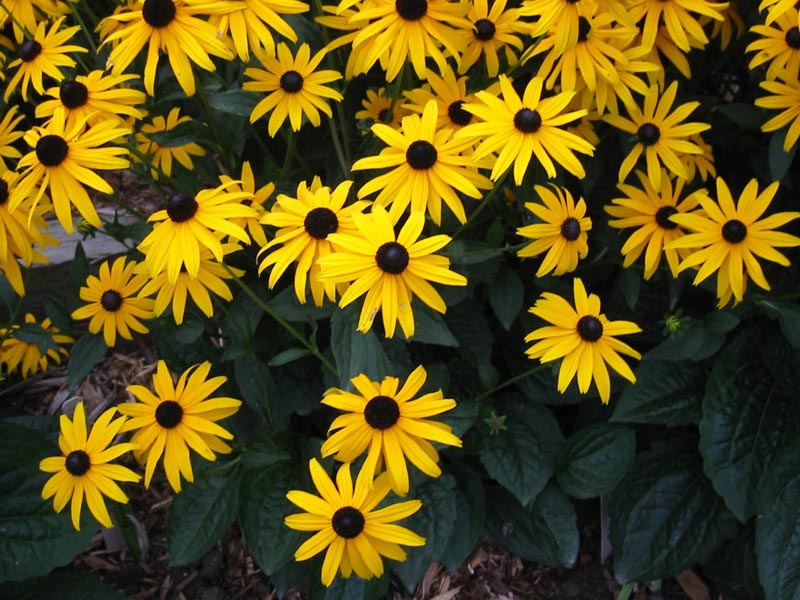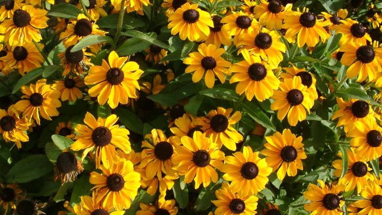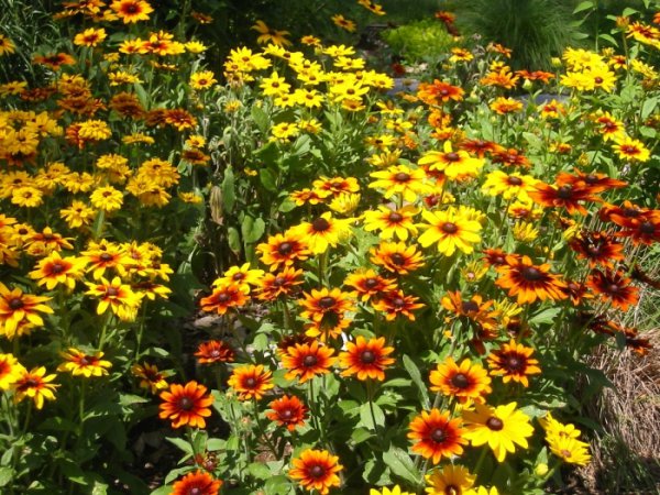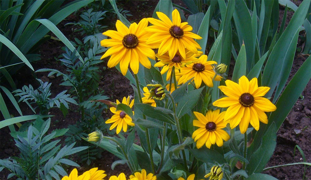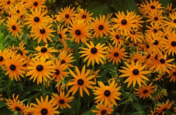Рудбекия многолетняя насчитывает около 40 сортов. Практически все они неприхотливы и отлично приживаются. Цветки рудбекии в зависимости от сорта имеют множество оттенков желтого и оранжевого. Места на участке этот цветок предпочитает солнечные, однако и в легкой тени чувствует себя довольно уверенно.