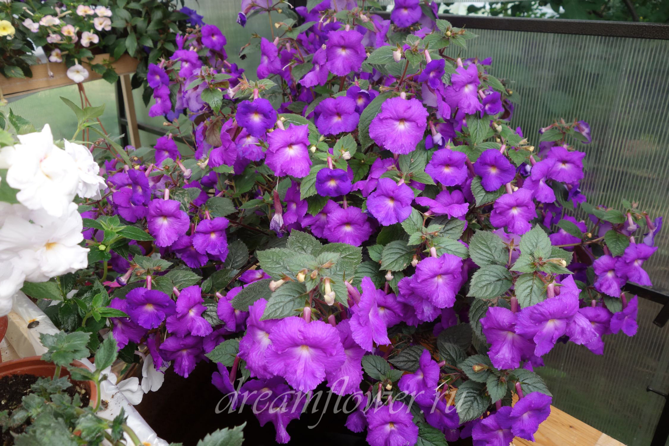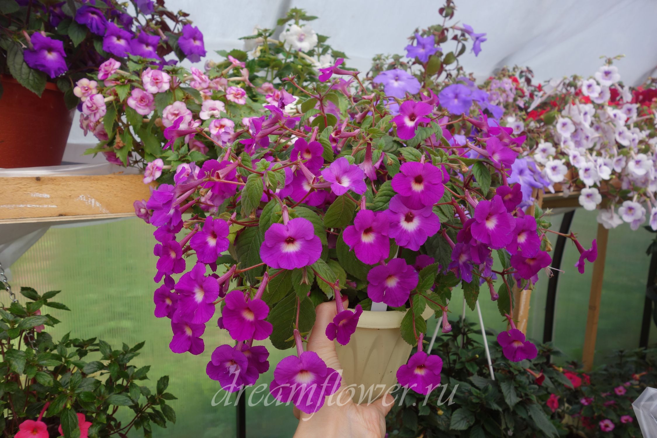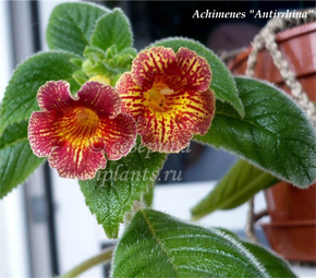 Белый ахименес. Пряморослые стебли зеленых или красных оттенков во время цветения покрываются белыми цветками с желтым зевом.- Ахименес Эренберга. Прямые стебли сильно опушенные и обильно покрыты листвой. С лета до осени радует лилово-розовыми цветками.