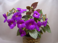 - Мексиканский ахименес. Растение, выращиваемое ампельным способом, характеризуется ветвящимися длинными побегами. Крупные цветки до 4 см бывают фиолетового, лилового или розового оттенка с белым зевом.