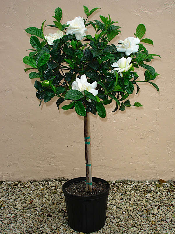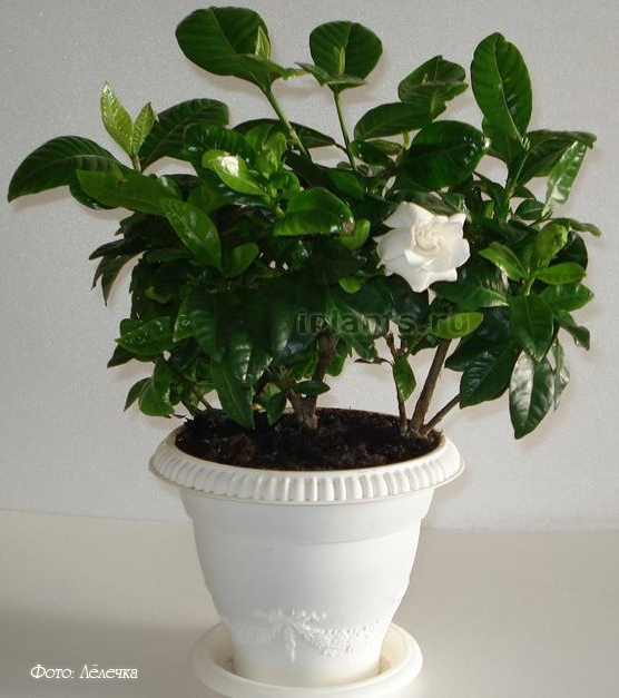 Однако большинство видов цветка имеют небольшие размеры. Сам по себе комнатный цветок состоит из нежно-белого ароматного бутона, густой кроны и глянцевых листьев зелёного цвета. Этот ароматный и пышный цветок своим видом привлекает любителей комнатных цветков и растений.