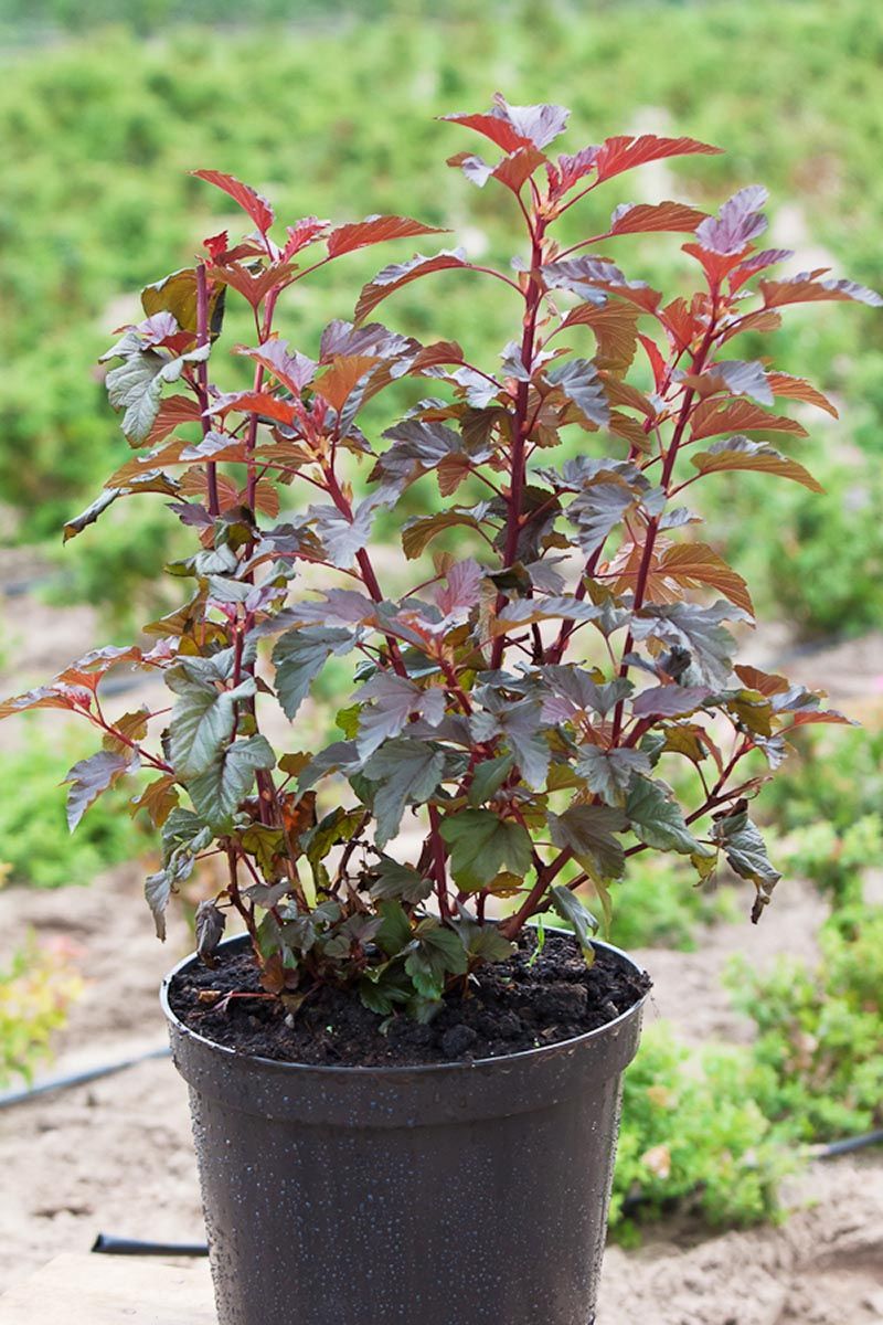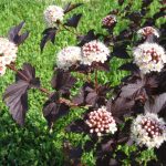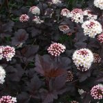 - Пузыреплодник калинолистный Ред Барон – растение отличается двухметровой полушаровидной кроной, крупными гофрированными листьями, темно-красными молодыми побегами, зонтичными соцветиями с розовыми цветками и красными плодами. У пузыреплодника Ред Барон темно-красная окраска листьев, за счет которой его можно использовать для оформления ярких садовых композиций. Очень красивой получается живая изгородь.