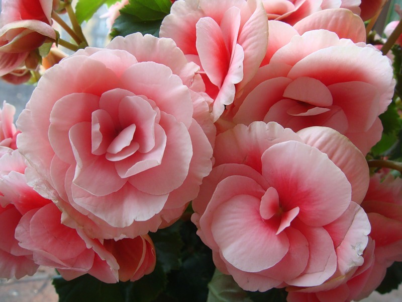 - Бегония Люцерна. Особенность растения – долгое цветение (июнь-сентябрь). Листья крупные, снизу розового цвета. Цветки крупные, розового оттенка.
