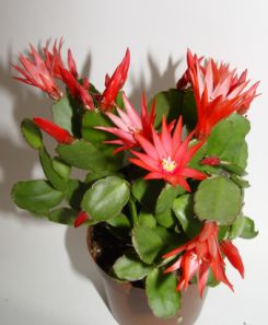 Шлюмбергера, или зигокактус – это лесной эпифитный кактус, который обычно цветет в декабре. Именно из-за необычных сроков цветения растение часто называют декабристом или рождественником. Цветок не имеет колючек. В условиях дикой природы зигокактус растет на стволах или корнях деревьев. Имеет форму куста со свешивающимися ветвистыми зелеными стеблями, состоящими из члеников, похожих на листья.