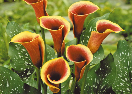 Калла Эллиота – тоже довольно крупное растение, имеющее сердцевидные листья в крапинку и жёлто-оранжевое покрывало цветка. Цветки нередко достигают высоты 15 сантиметров.