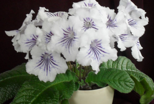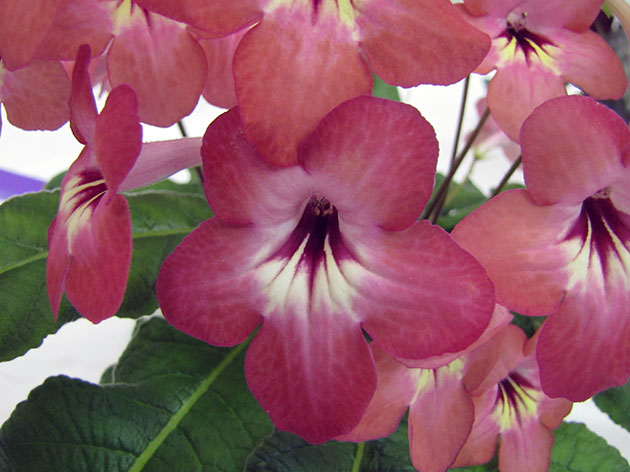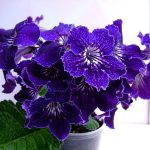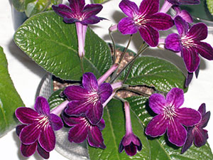 Листья у стрептокарпуса большие и мясистые, продолговатой формы темно-зеленого цвета. В длину один лист может достигать 25 см, а стебли растения очень короткие и покрыты пушистым ворсом. В центре розетки расположены яркие и красивые цветки, имеющие форму колокольчика с загнутыми лепестками. Отличается стрептокарпус обильным цветением – на одном растении может образовываться до сотни бутонов. Цветки имеют разнообразную окраску – от белой до темно-лиловой.