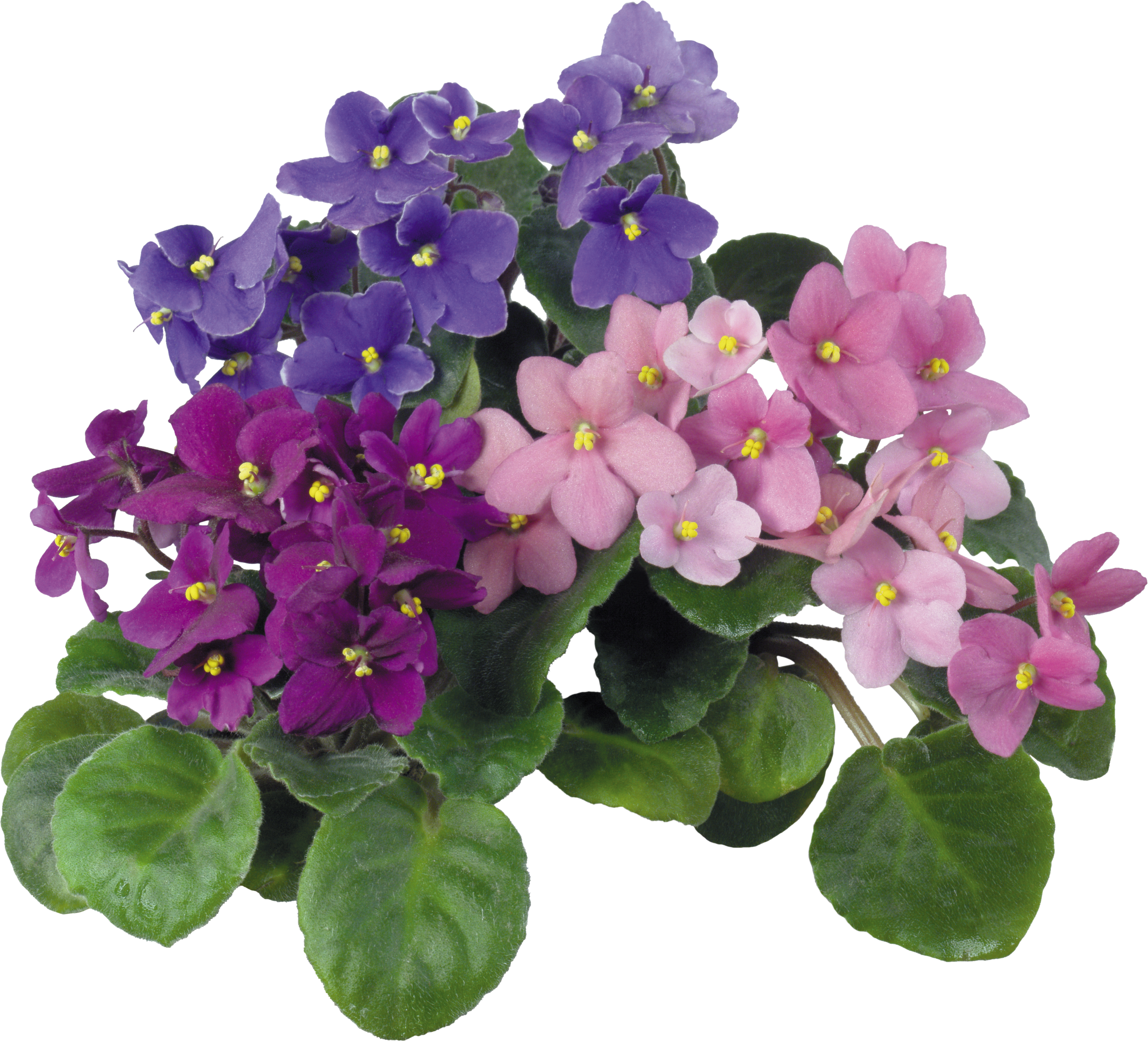Цветы образуются из пазух листьев. Основные виды сенполий имеют одиночные цветки, а гибриды — целые розетки. Цветки фиалки могут быть различной окраски: белой, голубой, красной, фиолетовой, розовой. В середине цветка имеется жёлтый пыльник.