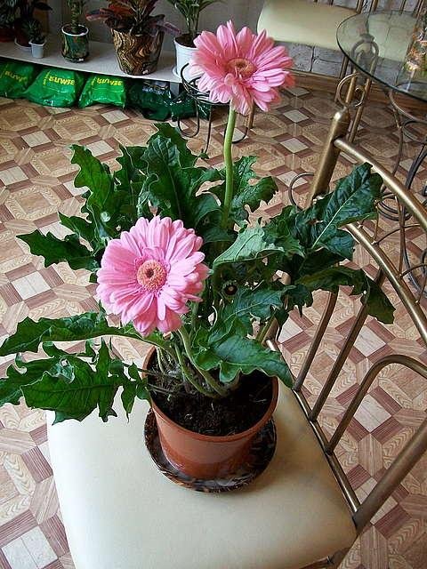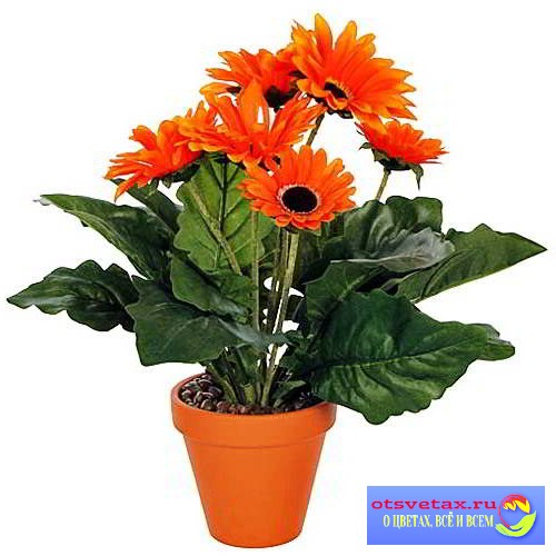 Влажность окружающей среды и полив. Нуждается в регулярном увлажнении, так как является тропическим жителем. Для полива берётся тёплая вода не ниже 20 градусов. Если в знойный день смочить герберу прохладной водой, то она заболеет. При избыточном увлажнении нижняя листва может подгнивать, а также велик риск появления нематодных червей, от которых потом невозможно избавиться. Опрыскивать цветок необходимо.- Не нужно спешить пересадить герберу после покупки. Необходимо дождаться, пока она впадёт в состояние покоя, чтобы во время цветения не сбить её биологический ритм. Горшок подбирается на несколько сантиметров больше исходного. Грунт требуется лёгкий и питательный. Тот, в котором рос цветок в магазине, выкидывают. Оптимальный состав: листовая земля, торф и песок. А вот перегной строго противопоказан. В дальнейшем пересадку осуществляют по мере надобности.