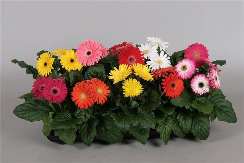 Все представители имеют высоту цветоноса не более 30 см. Используются для декорирования, идут на срезку. К герберам-миксам относятся сорта Фестиваль и Дурора.