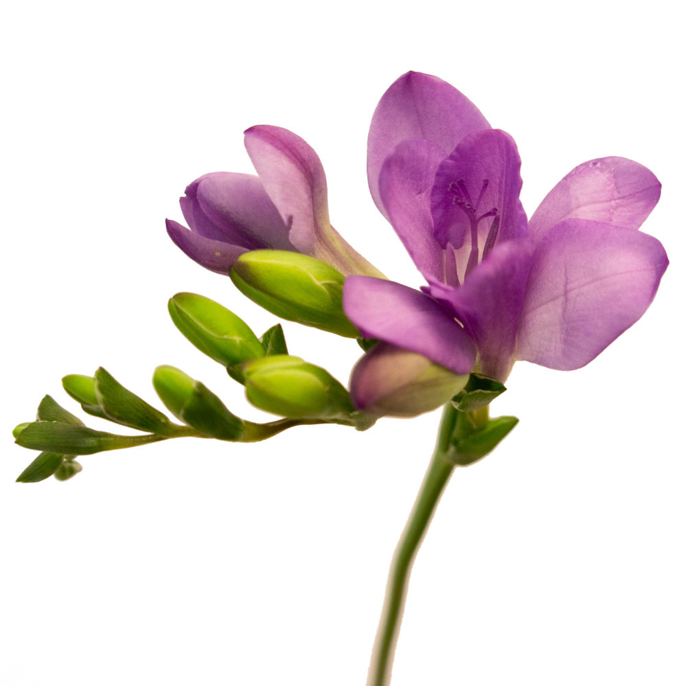 Цветки в виде бутонов, собраны в группы. Цветовая гамма варьируется от белого до тёмно-фиолетового. Бывает простая фрезия и махровая. Центральная часть бутона идёт на некотором контрасте с остальной частью. Плод представлен как коробочка с семенами.