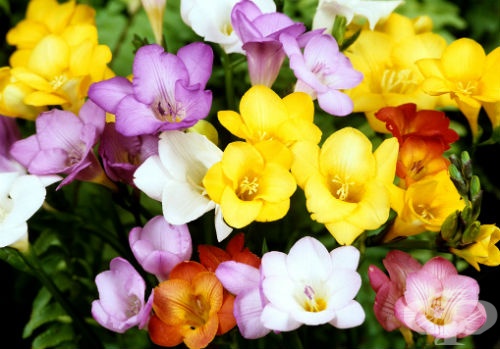 большие горшки. Для мелкоцветущих фрезий места требуется меньше. - Для пышности необходимо создать постоянный температурный режим около 22 ºС. Увядшие цветки своевременно удалять, чтобы они не лишали своих соседей питательных веществ. Срезать можно только цветы с раскрывшимися бутонами.