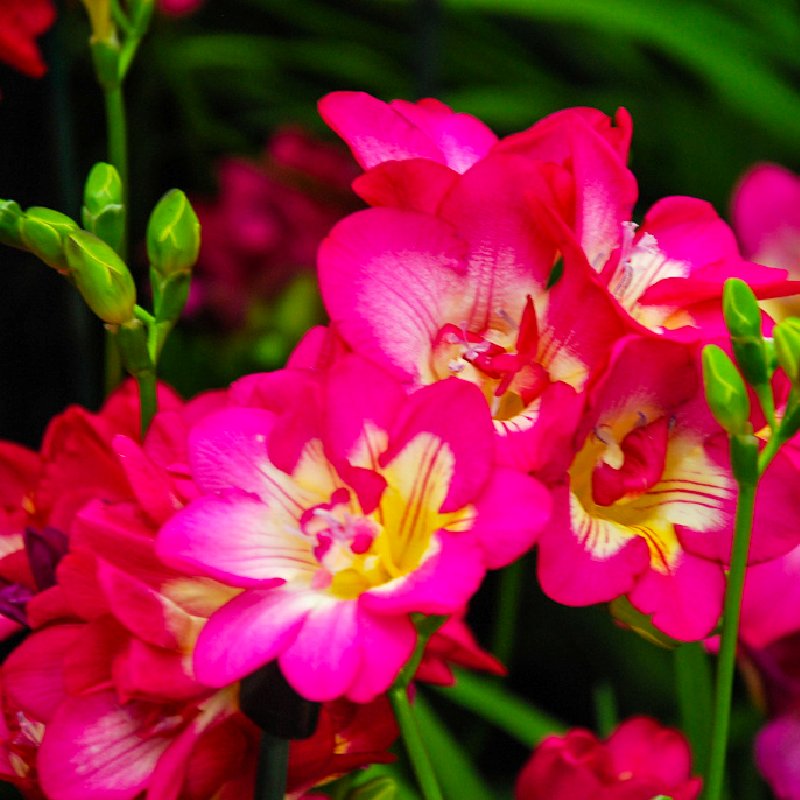 Следует отметить, что красные и жёлтые фрезии растут значительно быстрее других своих собратьев. У махровых сортов лепестки идут в несколько накладных рядов, а у простых — в один ряд.