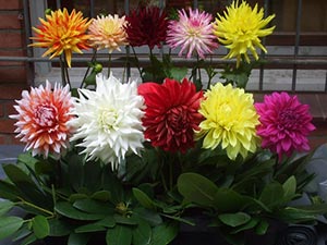 Георгины — многолетние садовые цветы семейства астровых. Это одни из самых красивых цветов. Они отличаются многообразием видов и широкой гаммой форм и расцветок. Ботаники насчитывают 42 вида георгинов. Такое разнообразие позволяет украшать этими цветами не только клумбы и палисадники, но и различные бордюрные линии. Их можно также сажать в вазоны и даже горшки. Для украшения обочин дорог используют бордюрные георгины. В вазонах высаживают крупные сорта, в горшках — невысокие. Где бы эти цветы ни росли, они украшают любое место.