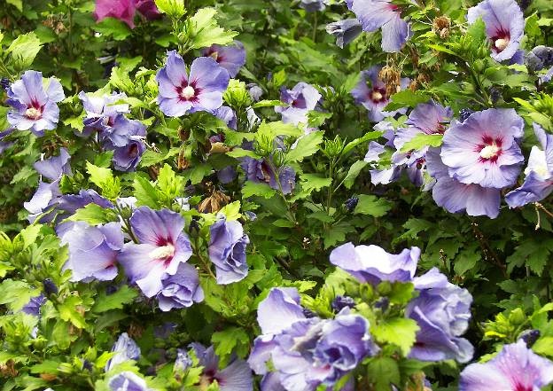 Гибискусы сирийские, тройчатые и садовые обладают общими чертами. Их листья черешковые, надрезные, а цветки яркие, крупного размера, махровые или простые. Они бывают следующих окрасов: