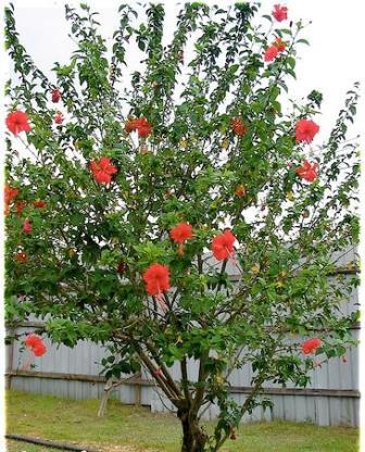 Чтобы высадить древовидный гибискус, яму для него делают в два раза больше, чем его корневая система. На дно ямы выкладывают слой дренажа из битого кирпича, имеющего толщину около 15 см, затем слой песка в 10 см, слой компоста в 15 см и снова слой песка такой же толщины.