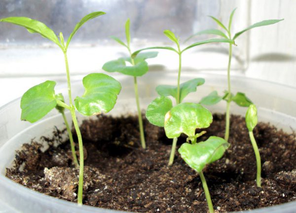 После формирования первых листочков сеянцы необходимо рассадить по отдельным горшочкам, при этом укоротив на треть корень. Грунт в горшочках должен быть уложен на дренажную подушку.