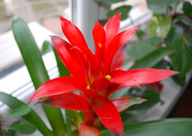 Вечнозеленое травянистое растение гузмания привлекательно своими яркими длинными листьями, необычным соцветием и длительным цветением. Цветок относится к роду Бромелиевых и произрастает в природе в тропических лесах и на открытых склонах гор в Южной Флориде, Вест-Индии, Центральной Америке, Бразилии, Венесуэле. Для комнатного цветоводства многие виды гузмании были культивированы еще в XVIII веке.