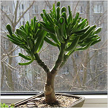 Крассула древовидная является классическим образцом растения. Этот вид толстянки и принято называть денежным деревом. Суккулент может достигать метра, а также хорошо переносит формирование кроны, которая широкая благодаря мясистым побегам. Листья толстянки закругленные, растут прямо из стебля по два, располагаясь друг против друга. На каждом новом уровне листья располагаются перекрестно соседним.