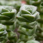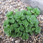 Второй способ — размножение черенками — надежнее и проще. Для черенков подходят листья и стеблевые отрезки. Для этого крупный лист или длинный побег укорачивают острым ножом, срез обрабатывают толченым углем. Затем подвяливают 2-3 дня и высаживают в смесь из песка и листовой земли. Также можно укоренить черенки в водном растворе древесного угля. Когда появятся корни, черенки высаживают в горшки диаметром 6 см с грунтовым составом: берут в равных пропорциях дерновую, листовую землю и песок. После этого помещают горшок на место постоянного содержания и проводят такой же уход, как за взрослым суккулентом.