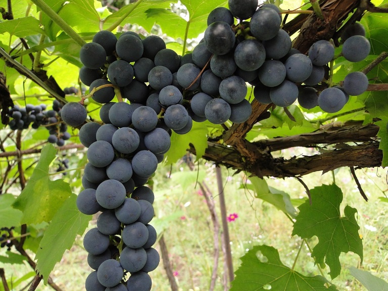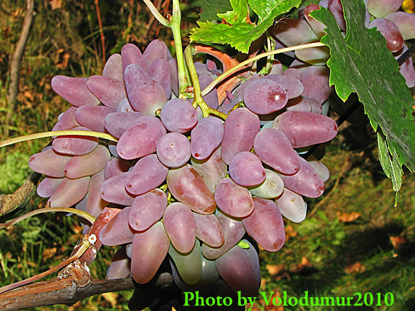 У него крупные тёмные ягоды. Плоды обладают высокой сахаристостью, что делает их идеальными для приготовления сока и вина.