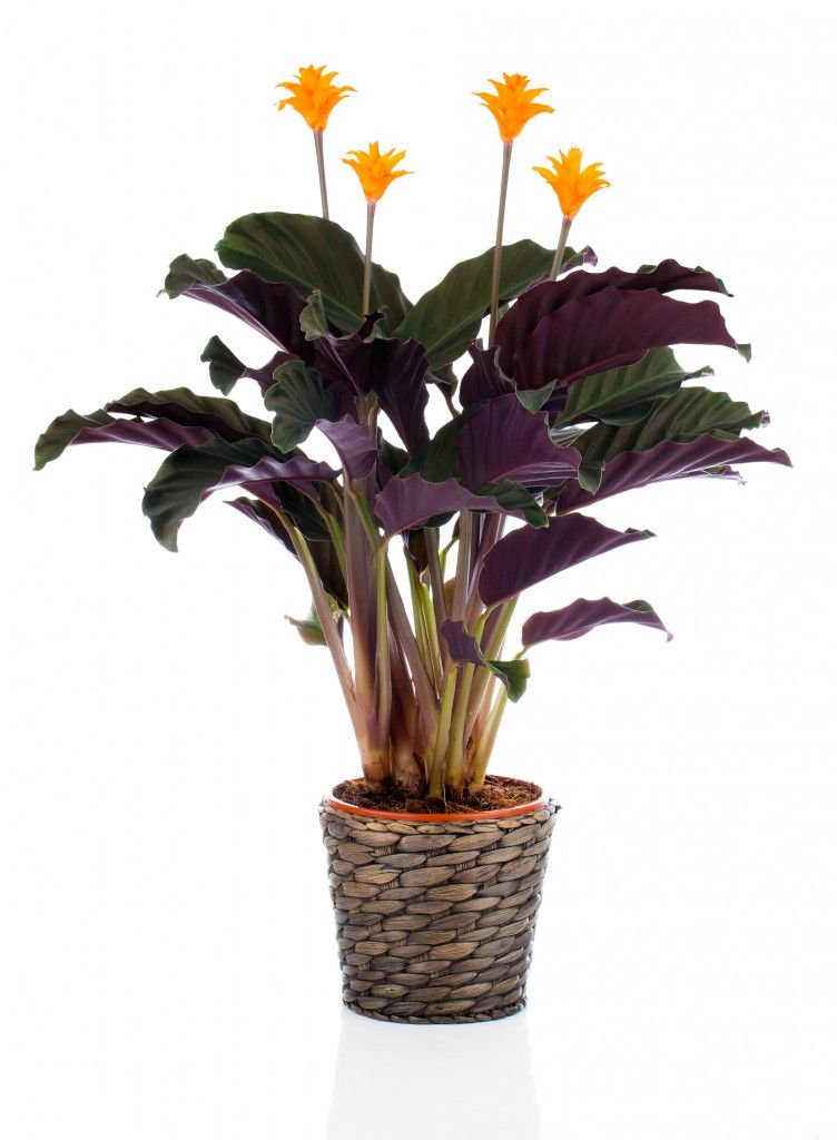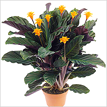Один из самых красивых цветков — калатея кроката, её цветение длится два месяца. Цветки имеют ярко-оранжевый цвет и форму пламени. За счёт этого они и получили своё название, которое переводится как «Вечный огонь». Согласитесь, звучит довольно символично и очень красиво. Кроката — отличный подарок близкому человеку на день рождения.